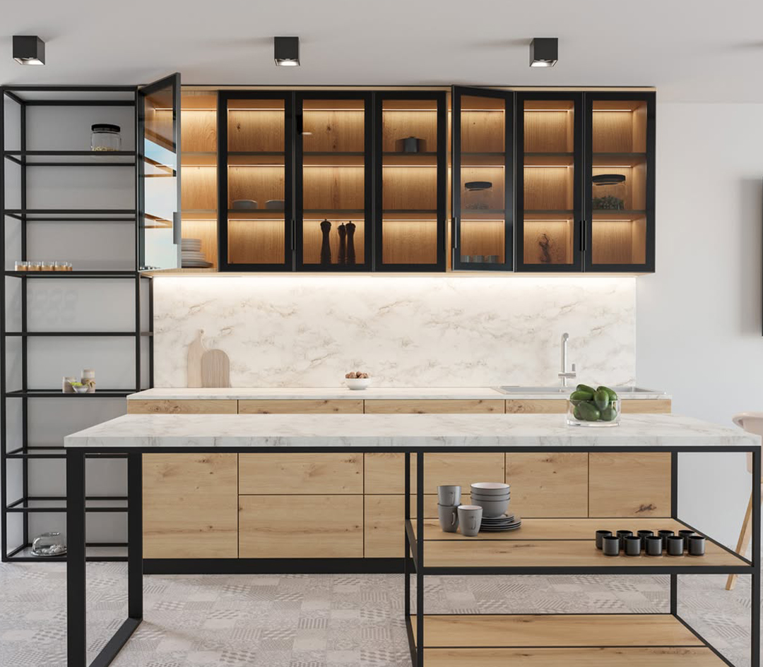 Cada estructura se adapta a tu hogar: elige el perfil, el acabado, el vidrio y los accesorios que mejor encajen con tu diseño, desde tiradores integrados hasta bisagras invisibles