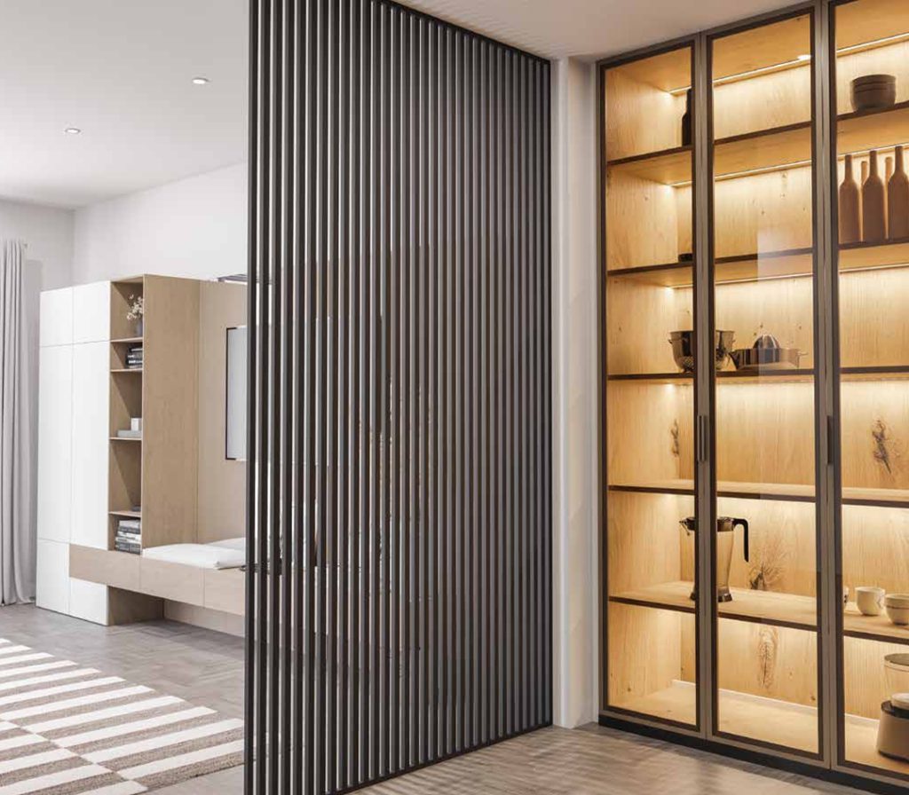 Gracias a esta versatilidad, Open Frame es ideal tanto para proyectos residenciales como contract, aportando un acabado impecable y soluciones prácticas en cualquier espacio.