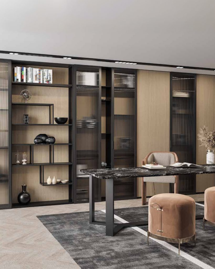 - Sistemas modulares y multifuncionales: la tendencia hacia interiores adaptables y separación de espacios, se traduce en soluciones que combinan flexibilidad y diseño. Nuestras estructuras Open Frame permiten crear vitrinas, mesas o muebles a medida, con perfiles de aluminio o hierro, cristales decorativos y acabados personalizados.